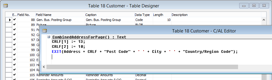 Here we return the address with a cariage return and line feed between the address and the Post code. You can make this smarter off course.