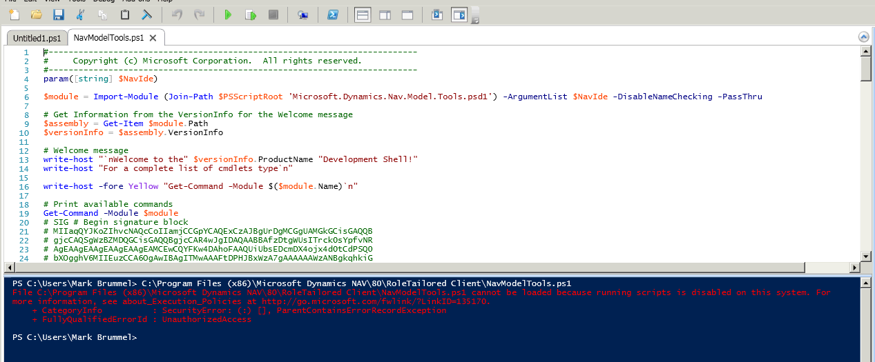 1. I’d suggest you would run in remotesigned mode. The NAV powershell tools are signed with a certificate and thus will run. Unrestricited will make your machine more vulnerable to “script kiddies” basically you will get a machine where it will run any script any time.
