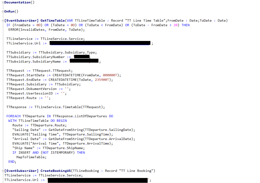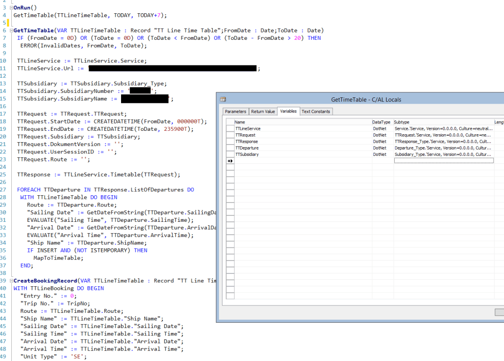 Off course decoupling is smart here in the first place since you may also want to interface with other ferry companies but that’s not what we’re looking at now. In the example I have the C/AL code and the DotNET code is on one codeunit and it needs to be decoupled.