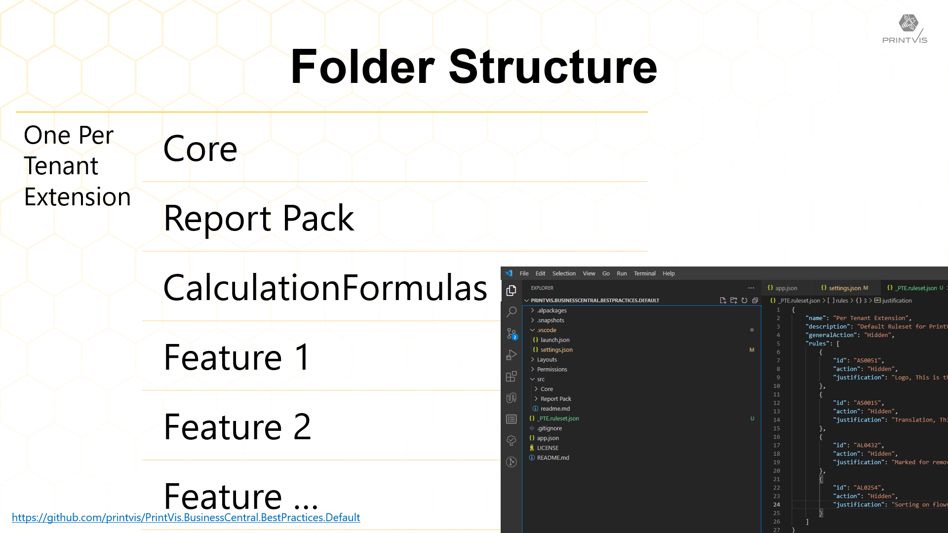 Every Per Tenant Extension has at least two sub modules. Core and Report Pack. With PrintVis we also have “typical PrintVis things” like Calculation Formula’s and Status Code triggers. This will be different for other vertical solutions.