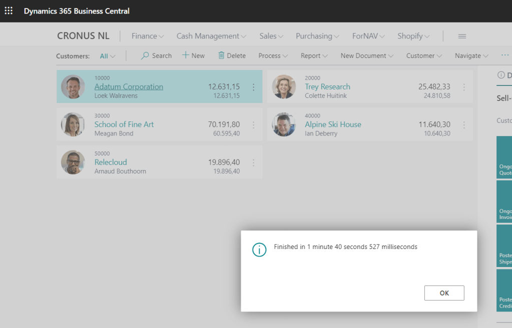 Together with the project team we’ve reproduced this issue on the latest versions of Business Central, also with a relatively small database.