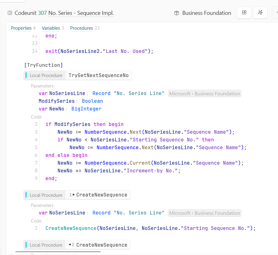The old codeunit got simplified, but still locks the number series line record and increments it by 1 using simple AL code.